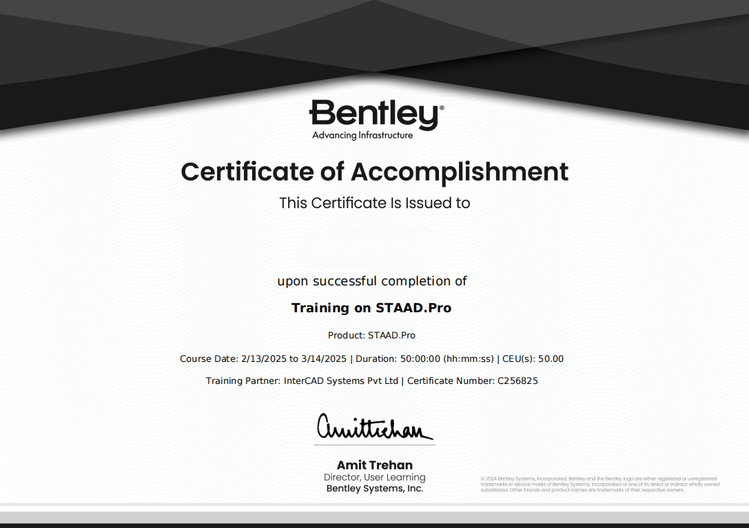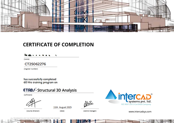 I completed the BIM for Structure course from InterCAD. After my MTech in CASE, this training really helped me refresh Staad Pro and understand how it connects with the BIM workflow. Thank you for the support, it was very helpful.